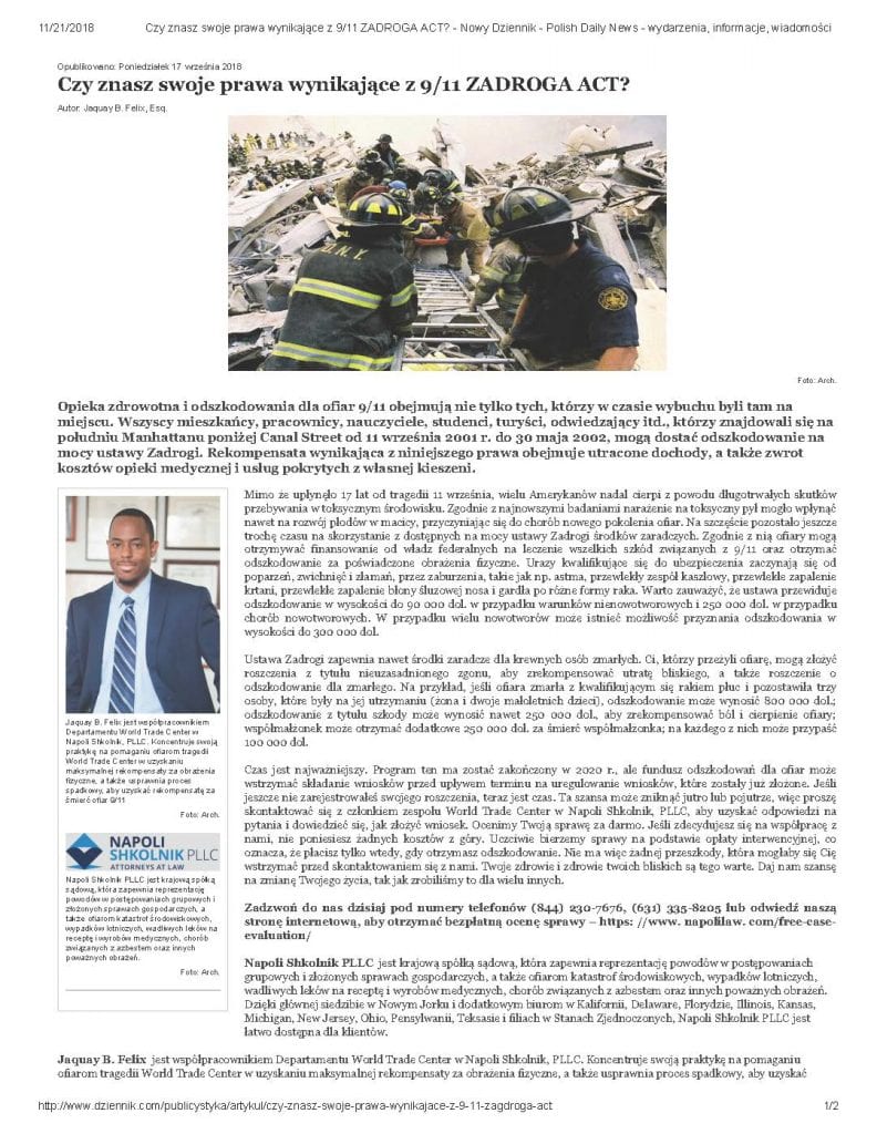 World Trade Center : Odszkodowa-nia dla poszkodowanych w sprawie.